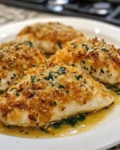 Parmesan Crusted Chicken with Garlic Sauce delights every bite!