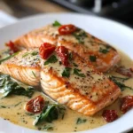 A delicious and creamy garlic butter sauce with Tuscan flavors, served over perfectly cooked salmon fillets.