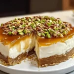 A delightful fusion of baklava and cheesecake, featuring layers of phyllo pastry, a creamy cheesecake filling, and a topping of honey and pistachios.