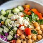A delicious and healthy Mediterranean-inspired quinoa bowl packed with protein and fresh vegetables.